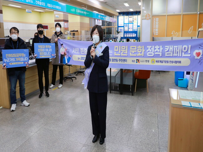 김보라 안성시장은 “캠페인을 제안하고 참여해 준 바르게살기운동 안성시협의회에 진심으로 감사드린다”며, “시민과 공직자가 서로를 존중하고 배려하는 민원 문화 정착을 통해 더불어 사는 풍요로운 안성이 구현되길 바란다”고 밝혔다.