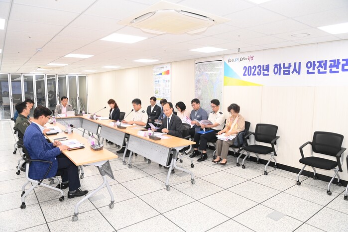 하남시(시장 이현재)는 11일 시청 본관 통합방위지원본부에서 하남시 안전관리위원회를 열고 ‘슈퍼팝 2023 뮤직 페스티벌’, ‘하남시민의 날 기념식 및 체육대회’ 행사에 대한 안전관리계획(안) 심의를 진행했다.