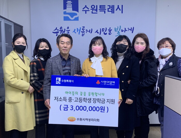 수원시여성리더회가 “저소득 가정 중·고등학생에게 전달해 달라”며 수원시에 장학금 300만 원을 기부했다.