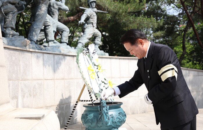 심상원 전몰군경유족회장은 유족대표 인사말에서 “조국을 위해 산화하신 선열의 희생이 헛되지 않도록 나라를 더욱 굳건히 지켜나가자”며 “나라와 민족을 위해 목숨을 바친 국가유공자들의 희생을 잊지 말고 기억해달라”고 말했다.