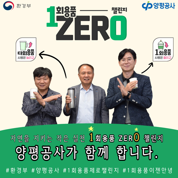 양평공사(이하 공사) 신범수 사장이 지난 23일 ‘1회용품 ZERO 챌린지’에 동참했다고 밝혔다.