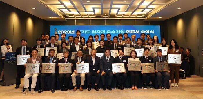 경기도는 26일 라마다플라자 수원호텔 오키드홀에서 염태영 경기도 경제부지사, 손일권 경기도일자리재단 서부사업본부장, 일자리 우수기업 인증기업 대표 등 관계자 80여 명이 참석한 가운데 ‘2023년 경기도 일자리 우수기업 인증서 수여식’을 열고 60개 우수기업에 인증서를 수여했다.