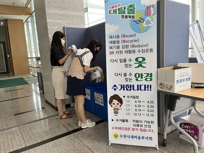‘헌 옷과 헌 안경 모으기 캠페인’은 3R 자원 재활용 수집 운동의 하나로 진행된다. 3R은 재사용(Reuse), 재활용(Recycle), 폐기물 감량(Reduce)을 뜻한다. 수원시새마을부녀회는 올해 4월 첫 캠페인을 열었고, 이번 2차 캠페인에 이어 오는 9월과 12월 등 총 4차례 캠페인을 진행할 예정이다.