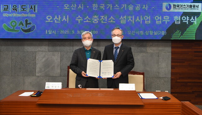 오산시(시장 곽상욱)는 지난 3일 한국가스기술공사와 수소충전소 구축 업무 협약을 체결했다고 4일 밝혔다.