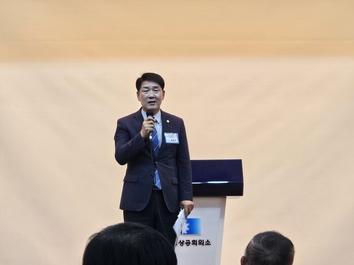 사진/제188차 화성경제인포럼에서 축사하는 화성시의회 배정수의장(사진제공=화성시의회)