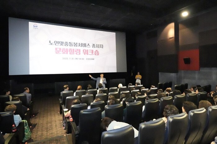신상진 성남시장이 31일 오후 야탑CGV에서 열린 ‘노인맞춤돌봄서비스 종사자 문화힐링 워크숍’에 참석해 현장 종사자들을 격려했다.