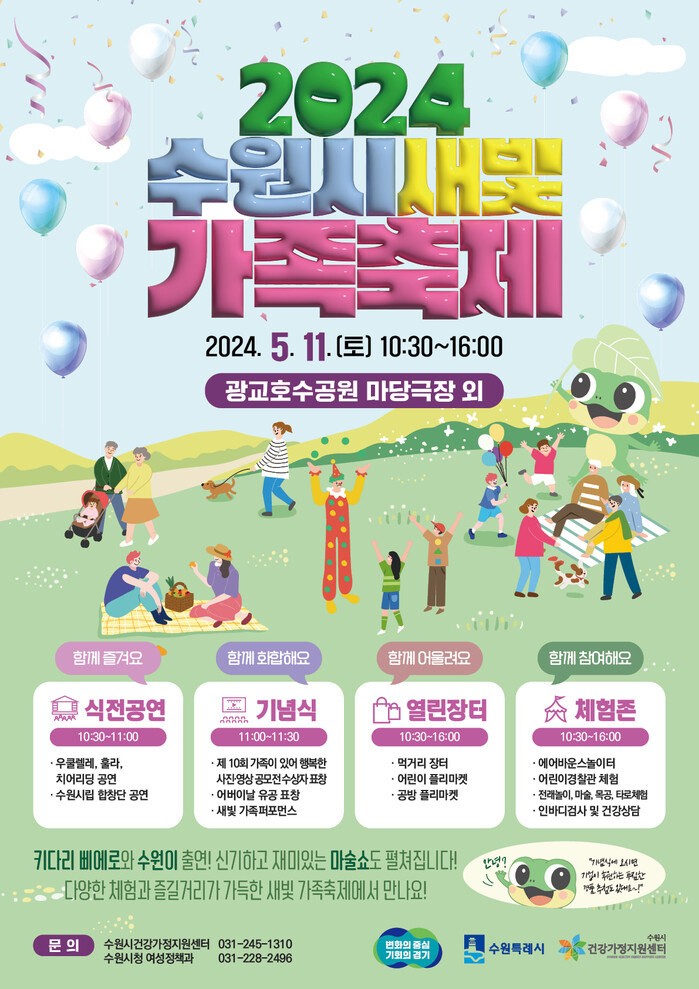 수원시(시장 이재준)가 가정의 날을 맞 가족이 함께할 수 있는 ‘2024 수원시새빛가족축제’를 연다.