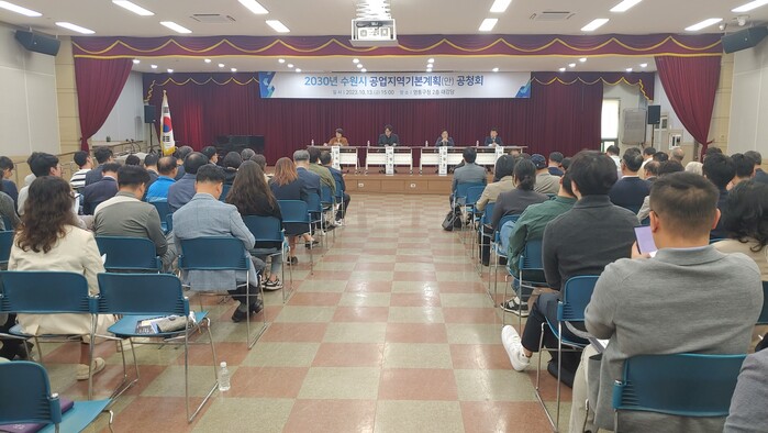 수원시가 지난 13일 영통구청 대강당에서 ‘2030년 수원시 공업지역기본계획(안) 공청회’을 열고, 시민·전문가의 의견을 들었다.