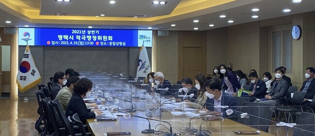 평택시(시장 정장선)는 지난 19일 시청 종합상황실에서 공직사회의 적극행정을 장려하고 시민에게 봉사하는 공직문화를 조성하기 위해 2021년 상반기 적극행정위원회를 개최했다.