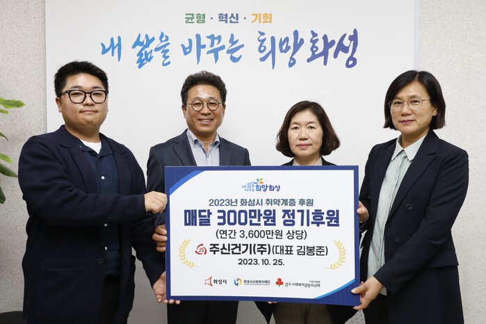화성시(시장 정명근)가 25일 주신건기(대표 김봉준)와 함께 정기후원금 기탁식을 진행했다.