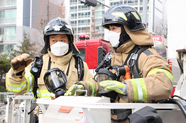 이어 청사시설을 두루 살펴본 뒤 현장 소방대원들과 유압스프레더, 매몰자 탐지기, 심폐소생기, 동력절단기 등 소방장비를 차례로 시연하며 신속한 사고대응과 화재진압을 위한 준비 및 훈련의 중요성을 강조했다.