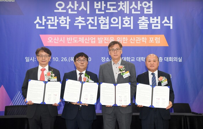 시는 지난 26일 오산대학교에서 ‘오산시 반도체 산업 발전을 위한 업무협약’(MOU)을 체결했다. 이날 업무협약에는 오산상공회의소와 관내 반도체 기업, 오산대학교, 한신대학교가 참여했다.