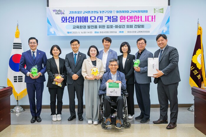 화성시의회 교육복지위원회(위원장 이해남)는 16일 화성시의회 대회의실에서 김포시의회 좋은 교육환경 만들기 연구모임 소속 의원과 간담회를 개최했다.