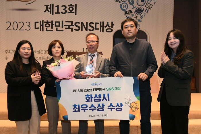 화성시(시장 정명근)가 12일 ‘제13회 2023 대한민국 SNS대상’에서 기초지방자치단체 부문 최우수상을 수상했다고 밝혔다.