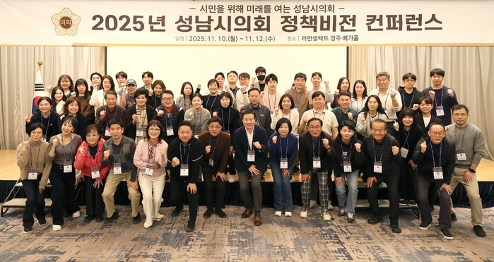 성남시의회(의장 직무대리 부의장 안광림을 비롯한 의원들)는 지난 10일부터 12일까지 2박3일간 경주시 일원에서 의원 21명, 의회사무국 직원 34명과 함께 「2025년 성남시의회 정책비전 컨퍼런스」를 실시하였다.