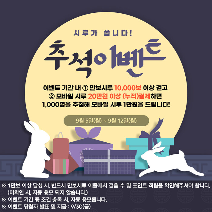 이번 이벤트는 추석 명절 기간 지역경제 활력을 높이고, 만보시루 활성화와 더불어 시민들의 일상 속 걷기 운동 실천을 활발하게 하고자 마련했다.