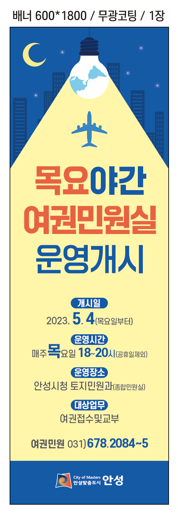 안성시가 오는 5월 4일(목)부터 ‘목요 야간 여권민원실’ 연장근무를 시행한다. ‘목요 야간 여권민원실’은 직장인과 맞벌이 부부, 학생 등 평일 근무시간 내에 여권 민원창구 방문이 어려운 시민들의 여권민원 편의를 위해 맞춤형으로 제공된다.