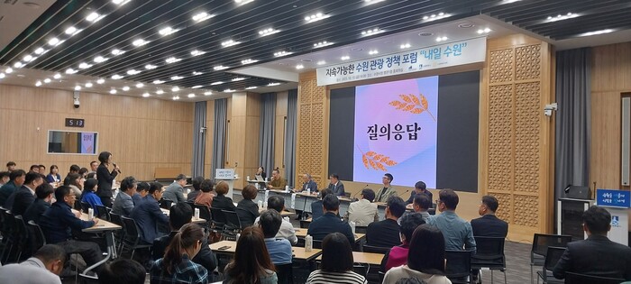 수원시관광협의회가 13일 시민을 대상으로 수원 관광정책 포럼 ‘내일 수원’을 열고, 문화·역사 자원을 활용한 지속 가능 콘텐츠 개발 방안을 논의했다.