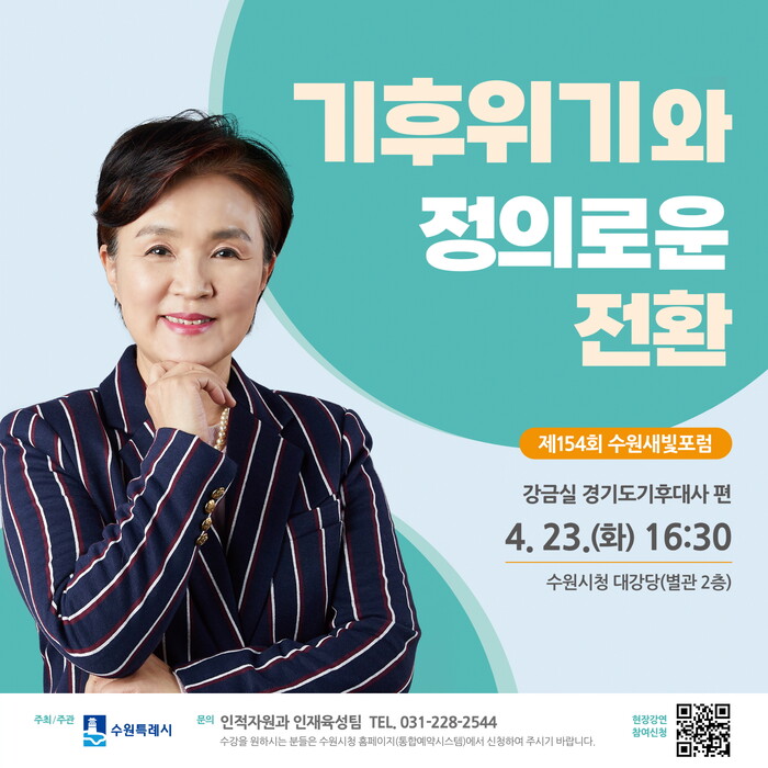 강금실 경기도기후대사가 제154회 수원새빛포럼 강연자로 나선다. 강연 주제는 ‘기후위기와 정의로운 전환’이다.