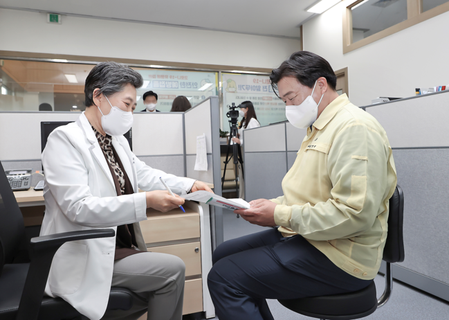 임 시장은 이날 예진표를 작성하고, 예진 의사의 진료를 통해 기저질환과 최근 건강상태 등을 확인했다. 접종실로 가 접종을 마친 후에는 30분간 이상반응을 관찰했다.