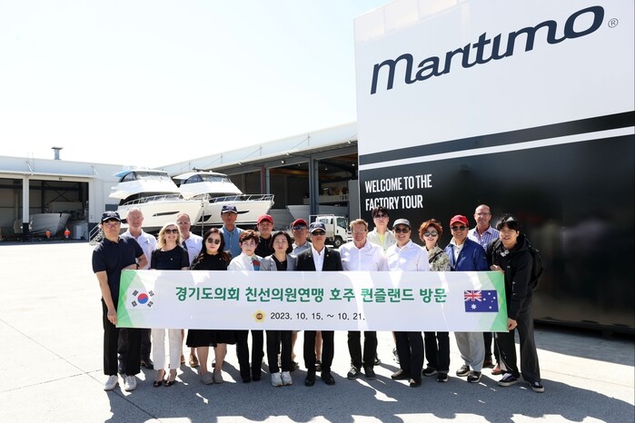 경기도의회 호주 퀸즐랜드 친선의원연맹(회장 이석균) 대표단(이하 친선연맹 대표단)이 20일 ‘호주 퀸즐랜드 골드코스트에 위치한 ‘Coomera’ 보트산업단지를 방문해 경기도 해양 및 관광 인프라 발전을 위한 벤치마킹을 추진하였다.