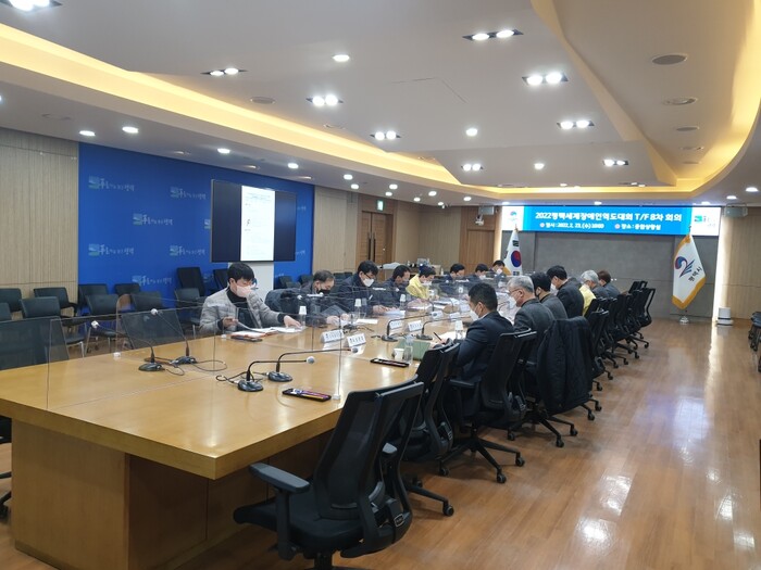 이날 점검회의는 지난 1월 14일 개최된 T/F 보고회에서 보고된 추진계획에 대한 미비점 등을 점검하고자 마련됐으며, 이번 회의부터는 대중교통 및 위생분야 관련 부서 관계자도 참석해 대회 개최 준비를 위한 운영방향・계획 등을 시 관계부서와 공유하는 시간을 가졌다.