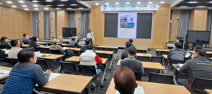 환경기술인(환경오염물질 배출 시설 관리자)의 역량을 강화하고, 쾌적한 대기 환경을 조성하기 위해 마련한 이번 교육에는 수원지역 대기배출업소(자동차 정비업) 119개소 소속 환경기술인, 수원시 공직자 등이 참여했다.