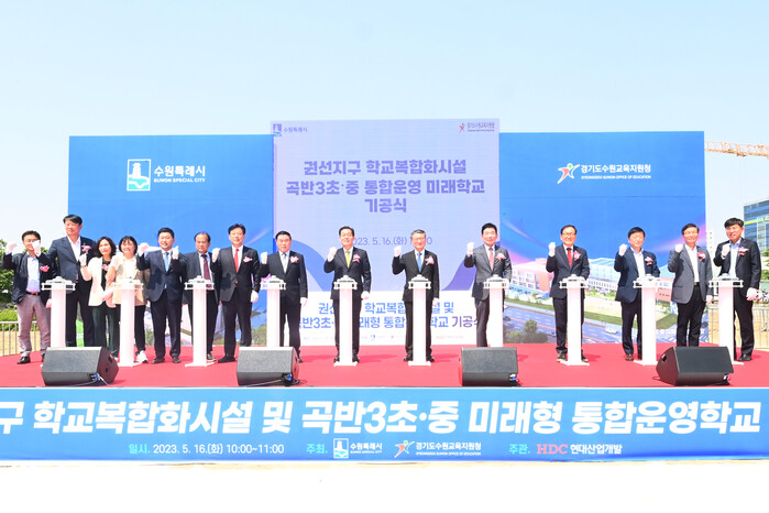 수원시와 경기도수원교육지원청은 16일 권선동 1339 일원에서 곡반3초·중 미래형 통합운영학교와 권선지구 학교복합화시설의 기공식을 열었다.