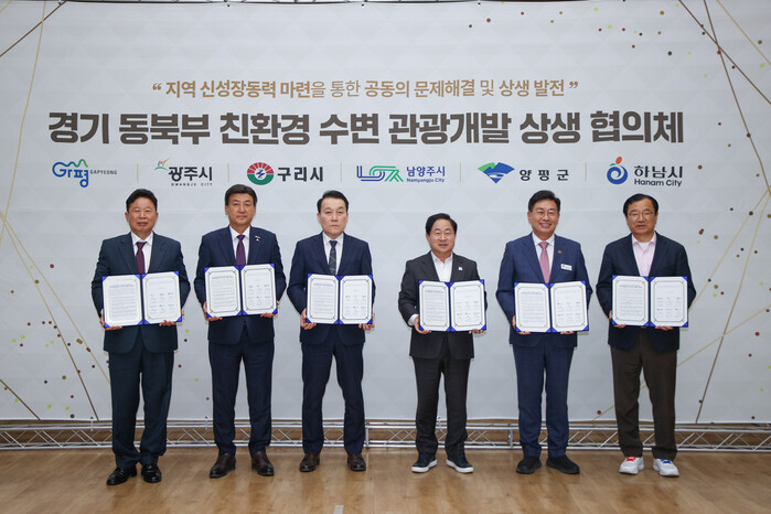 경기 동북부 6개 시·군(가평군, 광주시, 남양주시, 양평군, 하남시, 구리시)은 지난 12일, 남양주시 다산동 소재 경기시청자미디어센터에서 『경기 동북부 친환경 수변 관광개발 상생 협의체』(이하, 협의체)의 제1차 정례회의를 개최하고 공식 출범을 알렸다.