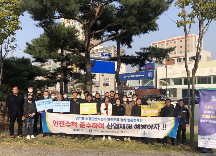 이날 캠페인에는 수원·군포·오산·의왕·평택·화성시에서 활동하는 노동안전지킴이 30여 명이 참여해 노동자와 시민들에게 “안전 수칙을 준수해 산업재해를 예방하자”고 독려했다.