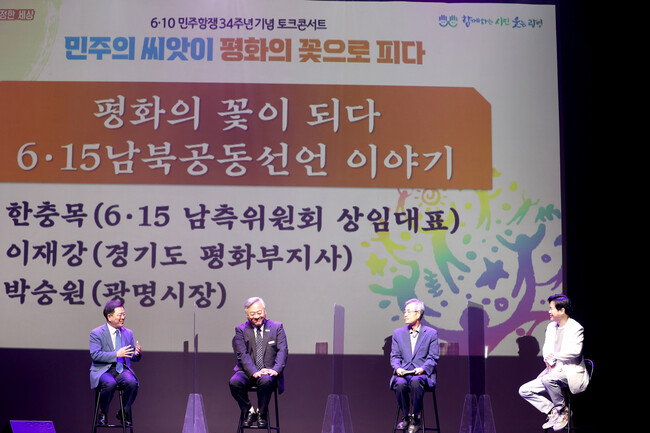 개그맨 강성범의 사회로 진행된 이날 행사에는 박승원 광명시장, 이재강 경기도 평화부지사, ‘임을 위한 행진곡’을 작곡한 김종률 세종문화재단 대표이사, 1987년 당시 민주쟁취국민운동본부 상임집행위원장이었던 유시춘 EBS이사장, 6·15 남측위원회 한충목 상임대표 등 민주화운동 및 6·15 남북정상회담 관계자들이 패널로 참여했다.