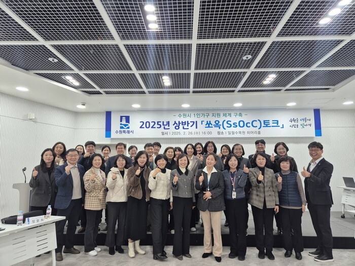수원시(시장 이재준)가 26일 일월수목원 히어리홀에서 ‘수원시 1인 가구 지원사업 부서 간담회-쏘옥(SsOcC)토크’를 열고, 신규 1인 가구 지원 정책을 논의했다.