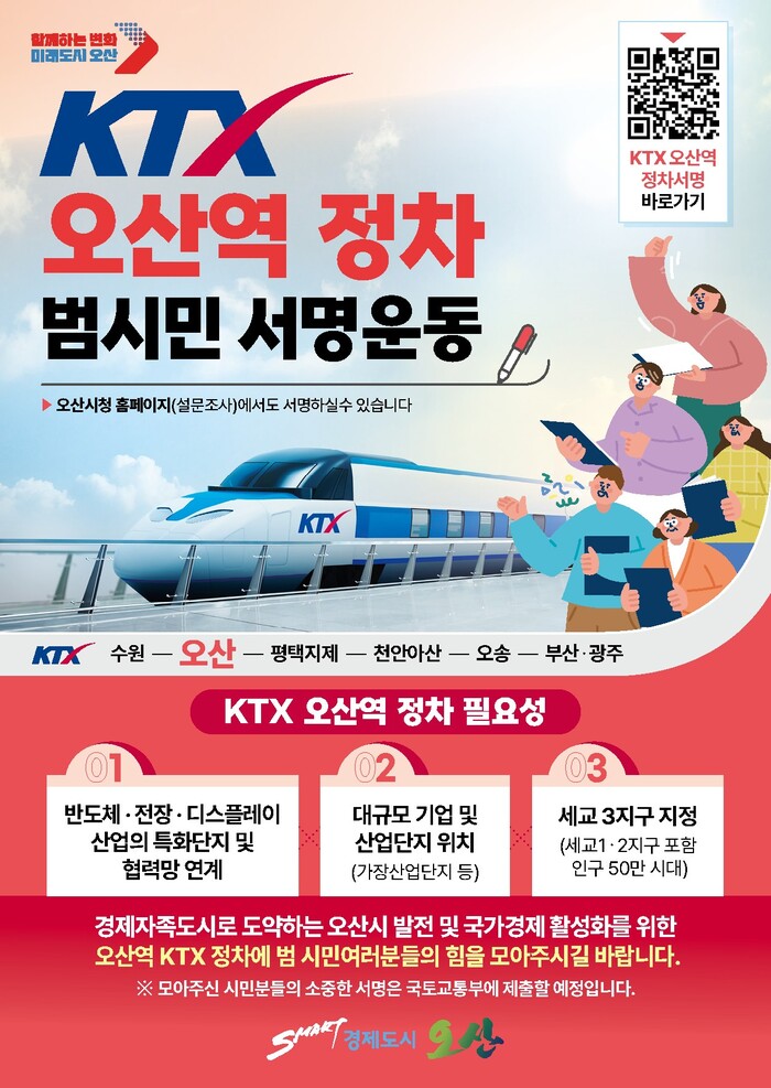 아울러 “모두가 한마음으로 함께 하면 분명히 혁신적으로 발전하는 도시, 오산으로 나아갈 수 있다. 수원발 KTX 오산역 정차와 오산도시공사 설립 동의 서명운동에 함께해 달라”고 강조했다.