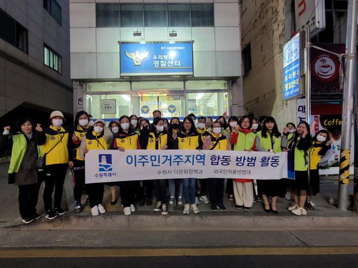 수원시 다문화정책과 공직자와 수원서부경찰서 경찰, 매산동·고등동행정복지센터 직원, 외국인자율방범대 등 60여 명은 고등동 외국인 상가 밀집지역과 역전시장 주변 다문화푸드랜드를 방범 순찰했다. 이주민과 시민들에게 범죄예방 홍보물을 배부하는 등 범죄예방캠페인도 함께 펼쳤다.