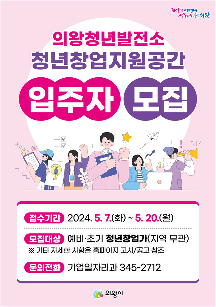 공간 현황 및 임대료, 입주신청서 등은 시청홈페이지(고시·공고)에서 확인할 수 있으며, 기타 자세한 사항은 의왕시 기업일자리과(031-345-2712)로 문의하면 된다.