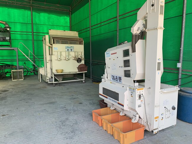 시는 2대의 자동 정선기를 흰콩(백태)과 검정콩(서리태)으로 나눠 운영하며, 자동화를 통한 일손과 시간 절감 효과를 얻는다.