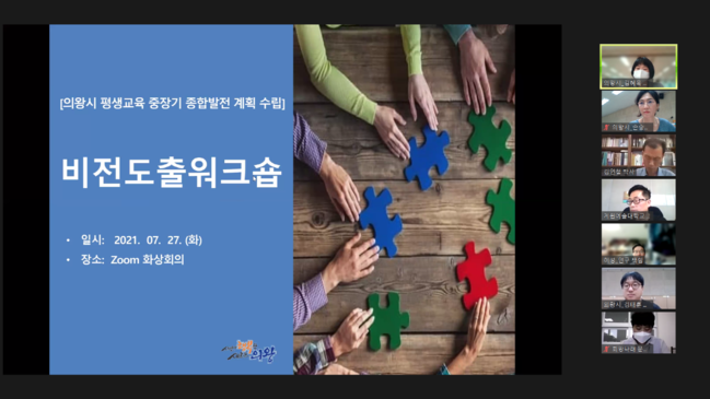 의왕시(시장 김상돈)가 평생교육 중장기 종합발전계획 수립을 위한‘비전 도출 워크숍’을 27일 온라인으로 개최했다.