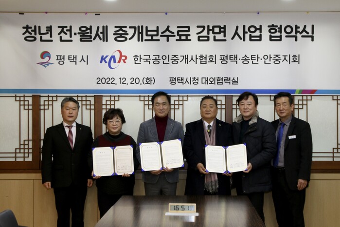 평택시(시장 정장선)는 지난 20일 한국공인중개사협회 평택·송탄·안중 지회와 청년 전·월세 중개보수료 감면 사업 업무 협약을 체결했다고 밝혔다.