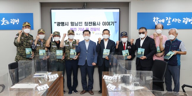 광명시는 16일 시청 영상회의실에서 박승원 광명시장, 월남전 참전용사, 관련보훈단체(월남참전자회, 고엽제전우회, 무공수훈자회) 지회장이 참석한 가운데 책 전달식을 개최했다.