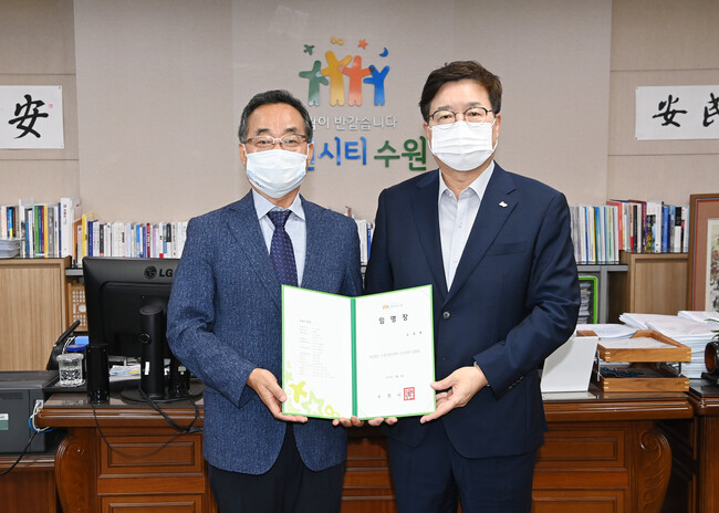 염태영 수원시장은 6일 집무실에서 김용환 신임 이사장에게 임명장을 수여했다.