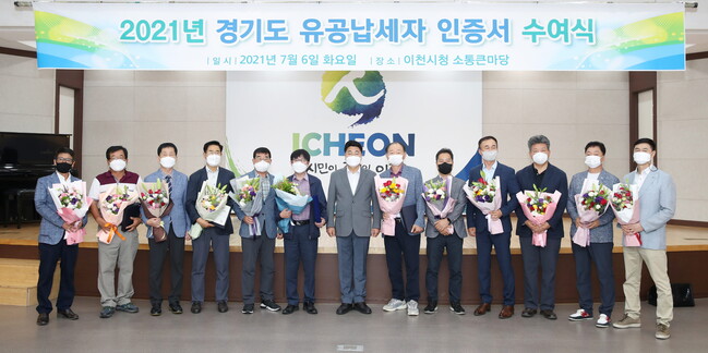 이천시(시장 엄태준)는 6일 지방세를 성실하게 납부해 이천시 재정확충에 기여한 납세자들이 사회적으로 존경과 우대를 받을 수 있는 토대를 마련하고자 개인 7명과 법인 5개소를 경기도 유공납세자로 선정해 인증서를 수여했다.