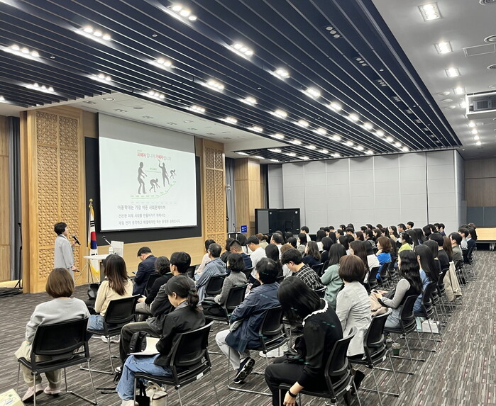 사진/ ‘2023년 공직자 아동권리 및 아동학대예방 교육’이 진행되는 모습(사진제공=수원시)