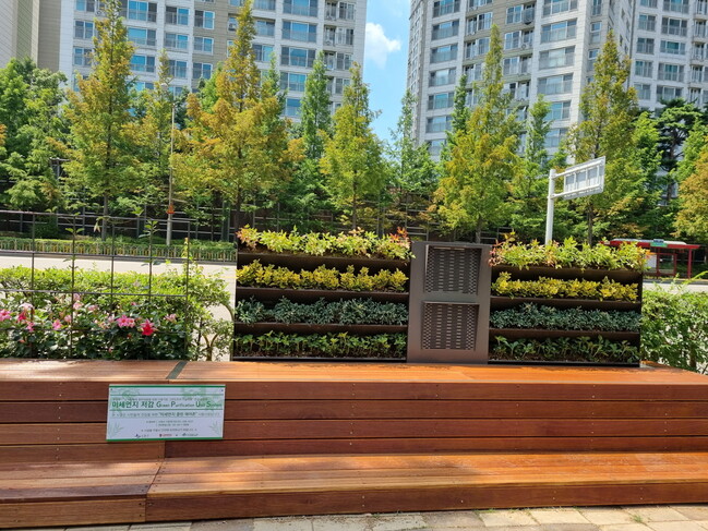 7월 27일 설치를 완료한 색동어린이공원 앞 GPUS(Green Purification Unit System) 모델은 식물을 활용한 미세먼지 저감 기술로 미세먼지 측정·물리정 정화(필터) 모듈·생태(식물) 모듈·IoT(사물인터넷) 유지관리 모듈의 다중 결합형이다.