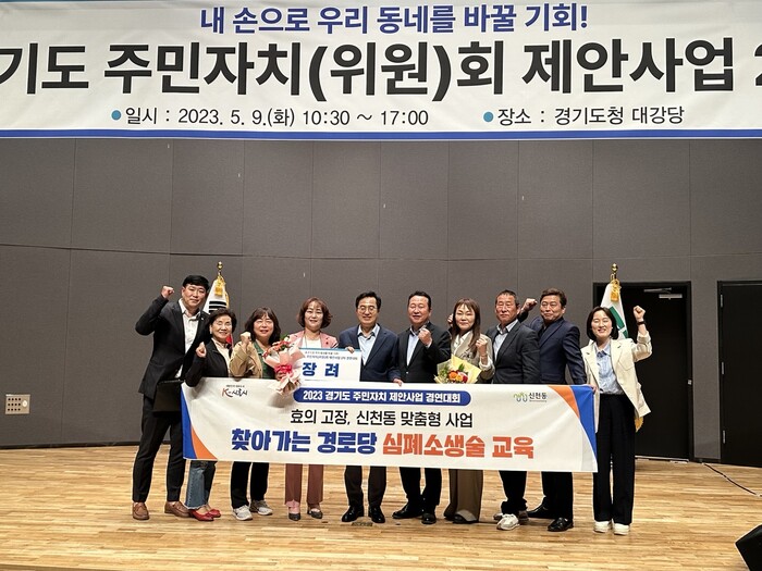 시흥시(시장 임병택)가 지난 9일 경기도청 대강당에서 열린 ‘2023 경기도 주민자치(위원)회 제안사업 2차 경연대회’에서 ‘찾아가는 경로당 심폐소생술 교육’으로 장려상을 받았다.