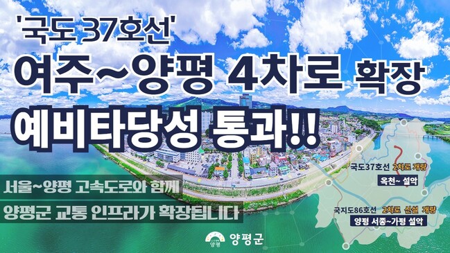 정동균 군수는 이날 자신의 페이스북을 통해 <국도 37호선 여주-양평 4차로 확장사업>은양평-여주 간 중부내륙고속도로 개통과 도시 확대, 관광객 증가 등으로 인한 교통량 급증으로 인한 사업의 필요성이 대두되어, 2018년 1월 국토부에 사업 반영을 건의한 이후 3년 만에 이뤄낸 쾌거라며 이같이 전했다.