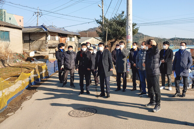 이에 배정수 위원장을 비롯한 정흥범 부위원장, 김효상 의원은 도시정책과장, 주민대표 등과 함께 현장을 방문해 사업진행과 민원사항 등을 의견청취하고 해결방안을 모색했다.