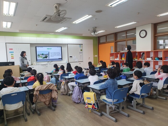 사진/전문 강사가 학교를 찾아가 수원화성 가치계승교육을 하고 있다.(사진제공=수원시)