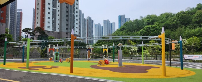 가온공원은 지난 2023년 준공된 공원으로, 공원 한편에는 어린이교통공원이 함께 조성돼 있었다. 그러나 관내 어린이들이 창의적으로 활동할 수 있는 공간을 조성해달라는 주민 요구에 따라, 시는 주민 의견을 수렴하고 타 시의 벤치마킹을 통해 누구나 편리하게 이용할 수 있는 공간을 재구성했다.