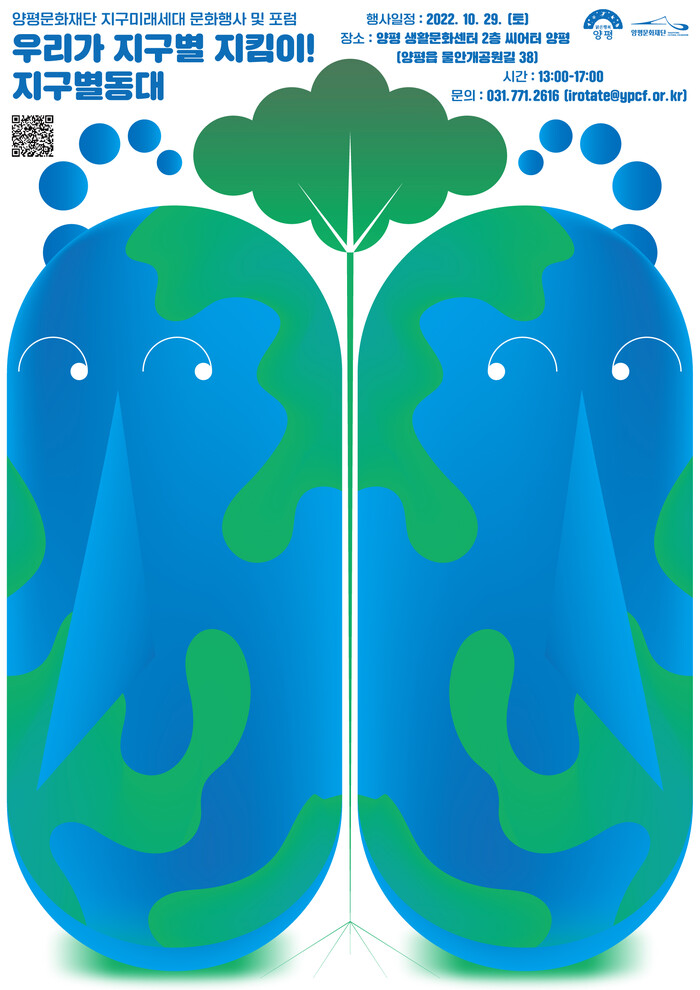 재단법인 양평문화재단이 오는 10월 25일부터 11월 2일까지 지구미래세대 문화행사인 <우리가 지구별 지킴이 “지구별동대”>를 양평생활문화센터에서 개최한다.