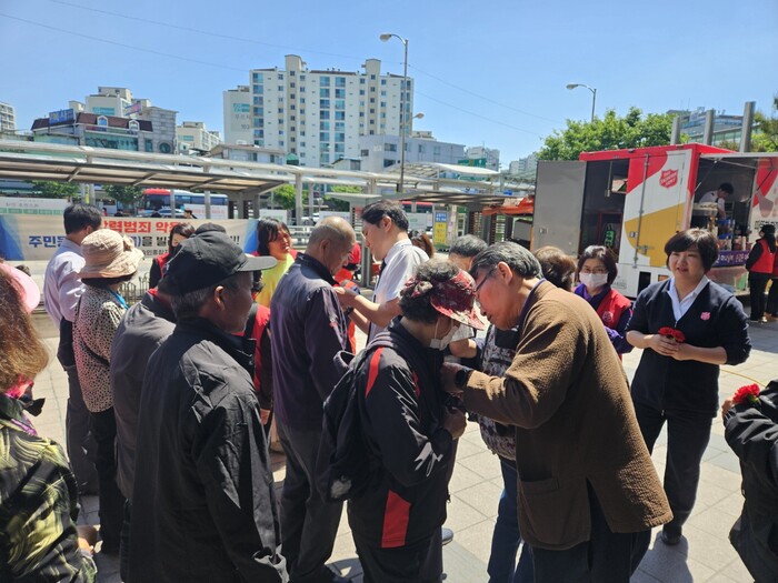수원다시서기노숙인종합지원센터와 구세군 직원들은 수원역 정나눔터에서 거리 노숙인 180여 명에게 도시락과 카네이션, 선물(효자손·죽비세트·간식꾸러미 등)을 전했다.